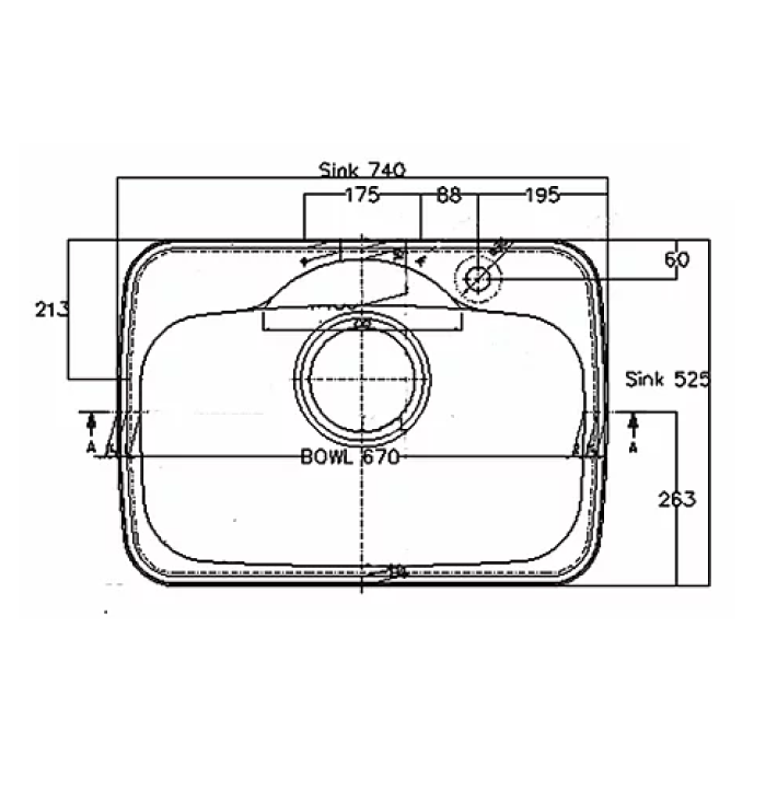 Stainless steel Single Bowl 74×51 cm
